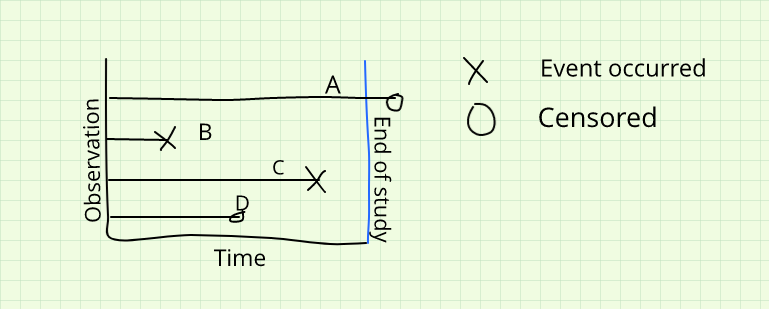 One of the distinguishing features of event history data is censoring, which arises whenever we cannot directly observe the event for some subjects within the study period. Censoring is not a flaw in the data; it is an inherent feature of studying processes that may not have concluded by the time data collection ends, and the survival methods described here are explicitly designed to incorporate rather than discard censored observations.